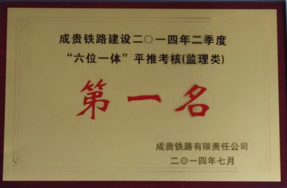 來自新建成貴鐵路信息,在幾十家參建單位中,北京瑞特監(jiān)理公司成貴鐵路監(jiān)理項(xiàng)目部榮獲2014年第二季度監(jiān)理單位綜合考核第1名,綜合得分98.59分(滿分100分)。 業(yè)主單位于2014年6月至7月5日組織對成貴鐵路參建的多家施工和監(jiān)理單位進(jìn)行了季度平推檢查,綜合2季度的綜合管理、工程質(zhì)量、安全、進(jìn)度、投資、環(huán)保、穩(wěn)定等考核內(nèi)容,打分評比,我公司駐成貴鐵路監(jiān)理項(xiàng)目部榮獲第1名,獲得業(yè)主單位的嘉獎(jiǎng)通報(bào)! 【2014年7月16日】